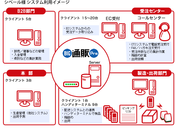 そして、パッケージソフトの標準機能に加え、これまでシベール様で培われてきた業務ノウハウやアイディアのぎっしり詰まった、セミオリジナルと呼ぶべき“BIG通販Pro”での業務がスタートしました。