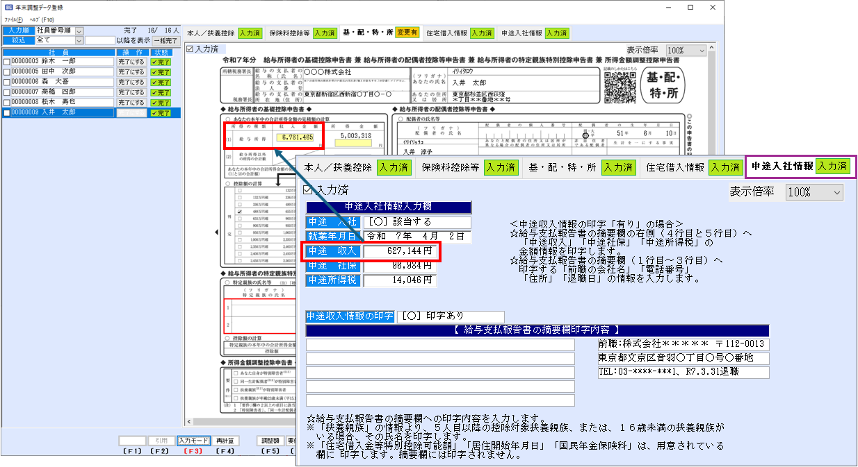 - Q【BIG給与計算Neo】中途入社社員の前職情報を登録したい