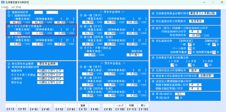②「②-2 子ども・子育て支援金率」の料率が、正しく設定されていることを確認します。