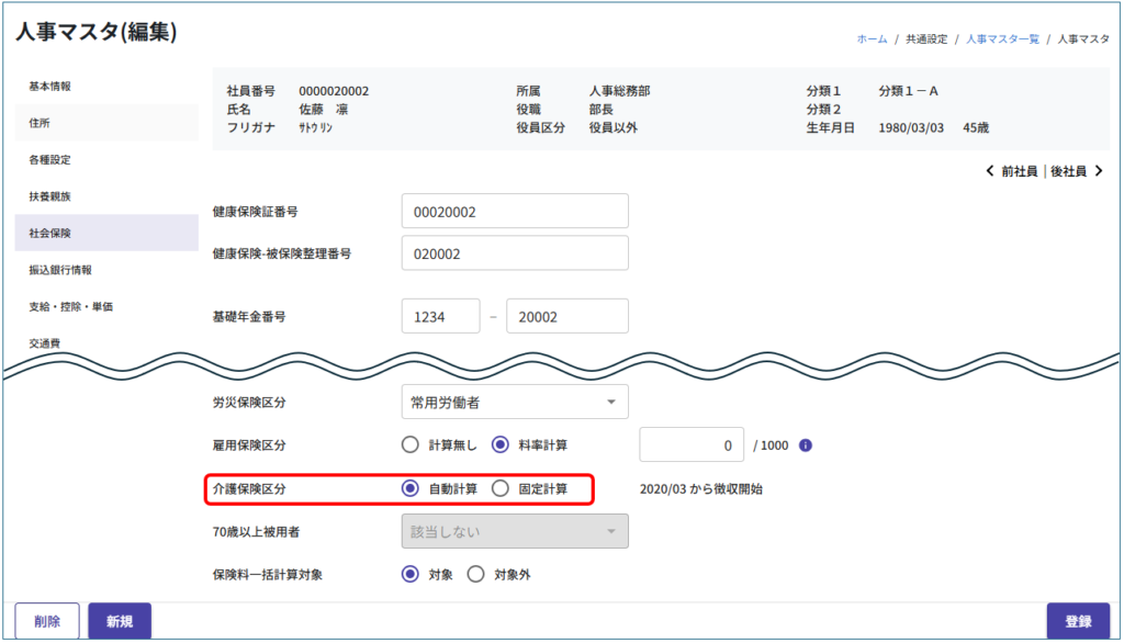 ■「社会保険」タブで「介護保険区分:自動計算」を選択している場合