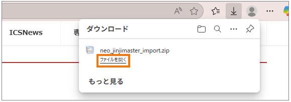 ③「ファイルを開く」をクリックし、ご利用の環境に合わせて操作します。ZIPファイルを展開すると、Excelのテンプレートファイルが格納されています。