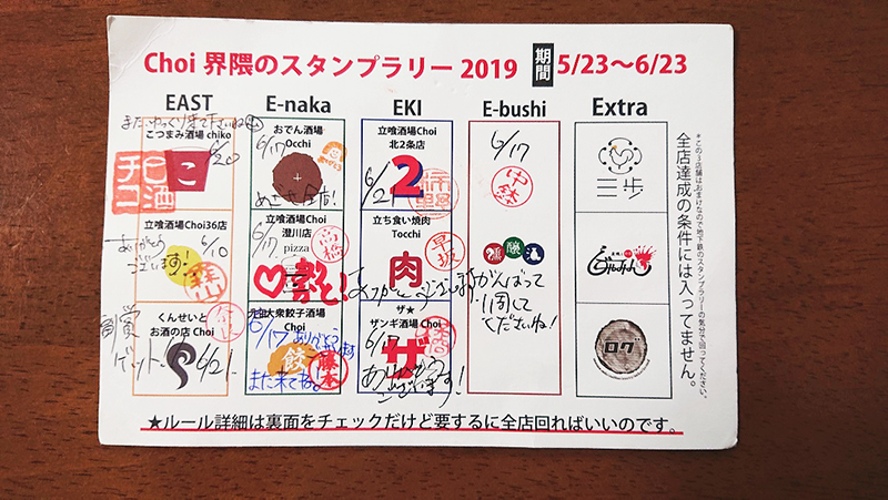 ルールはグループ店で飲み物2杯以上呑むとスタンプがもらえる。