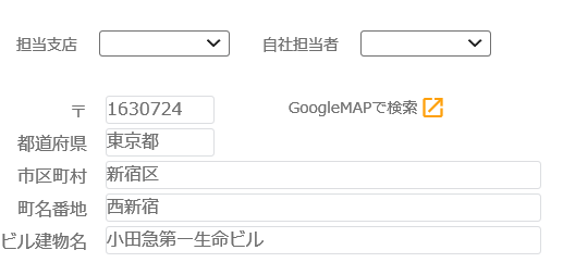 住所項目を使って、Googleマップから検索するリンクを追加しました。